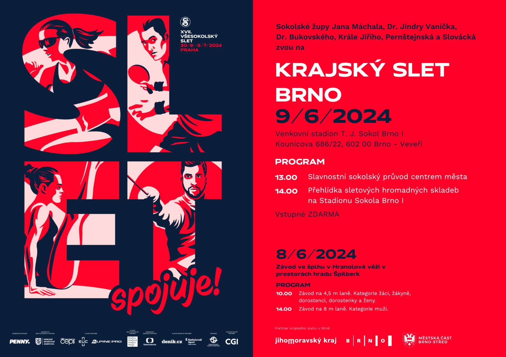 Dovolujeme si Vás srdečně pozvat na Krajský slet v Brně, který se bude konat v neděli dne 9.června 2024 na venkovním stadionu T.J.Sokol Brno I.